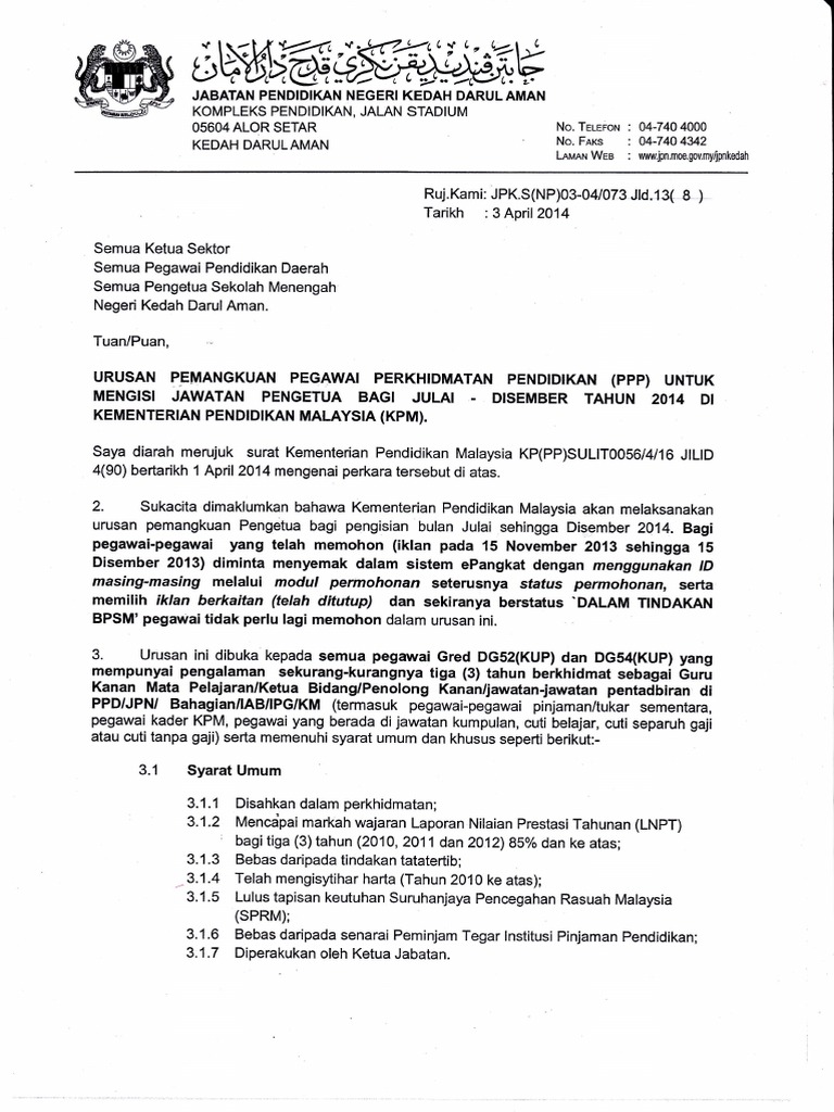 Semakan atas talian ini melibatkan semakan keputusan. Surat ini dihantar kepada pegawai melalui ketua jabatan. Penata MudaIII a Jabatan Guru.